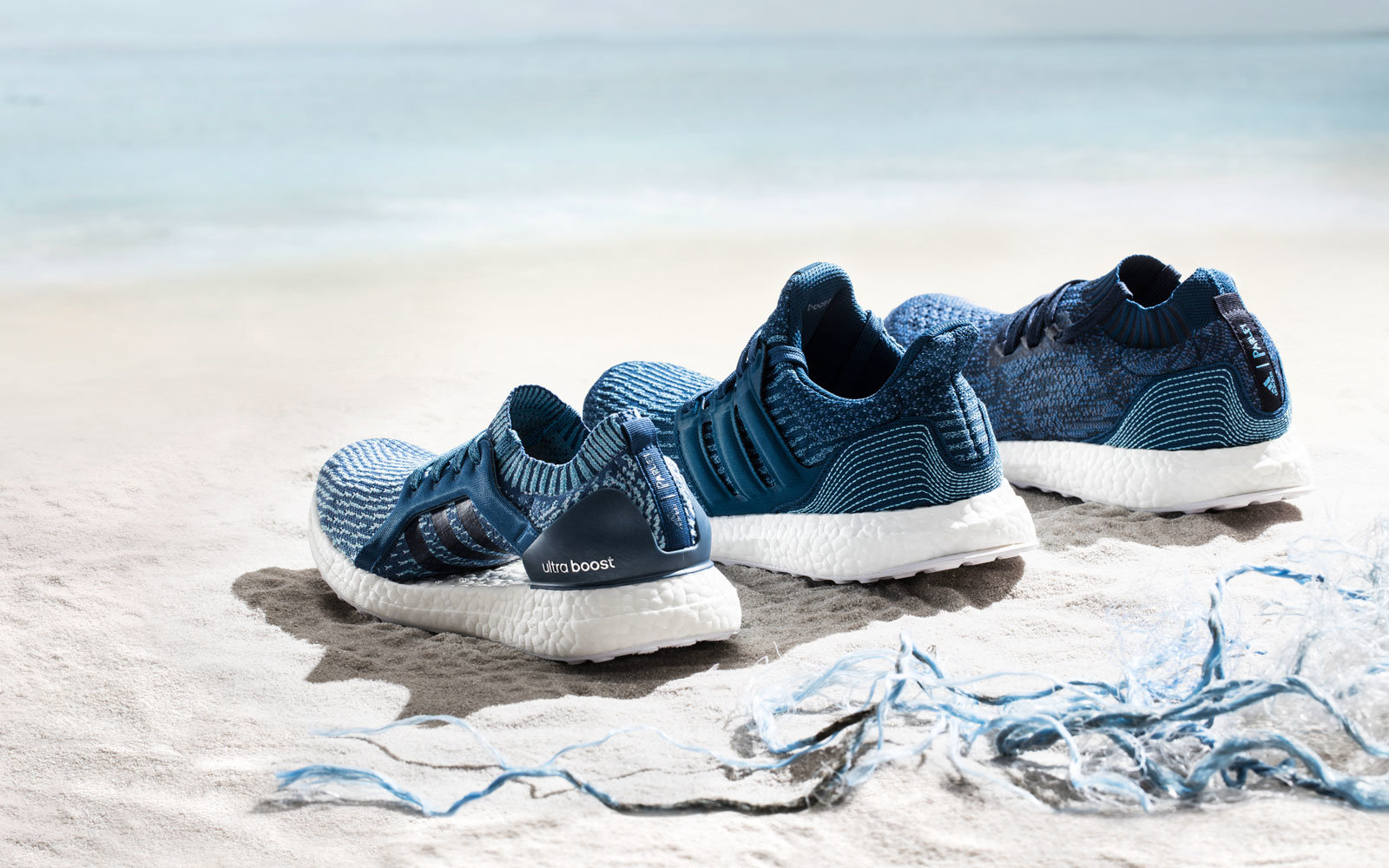 The Adidas x Parley collection is produced with upcycled plastic waste.